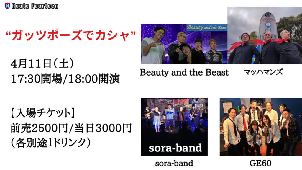 <入場チケット>前売り/¥4000 当日/¥4500 (別途1Drink)